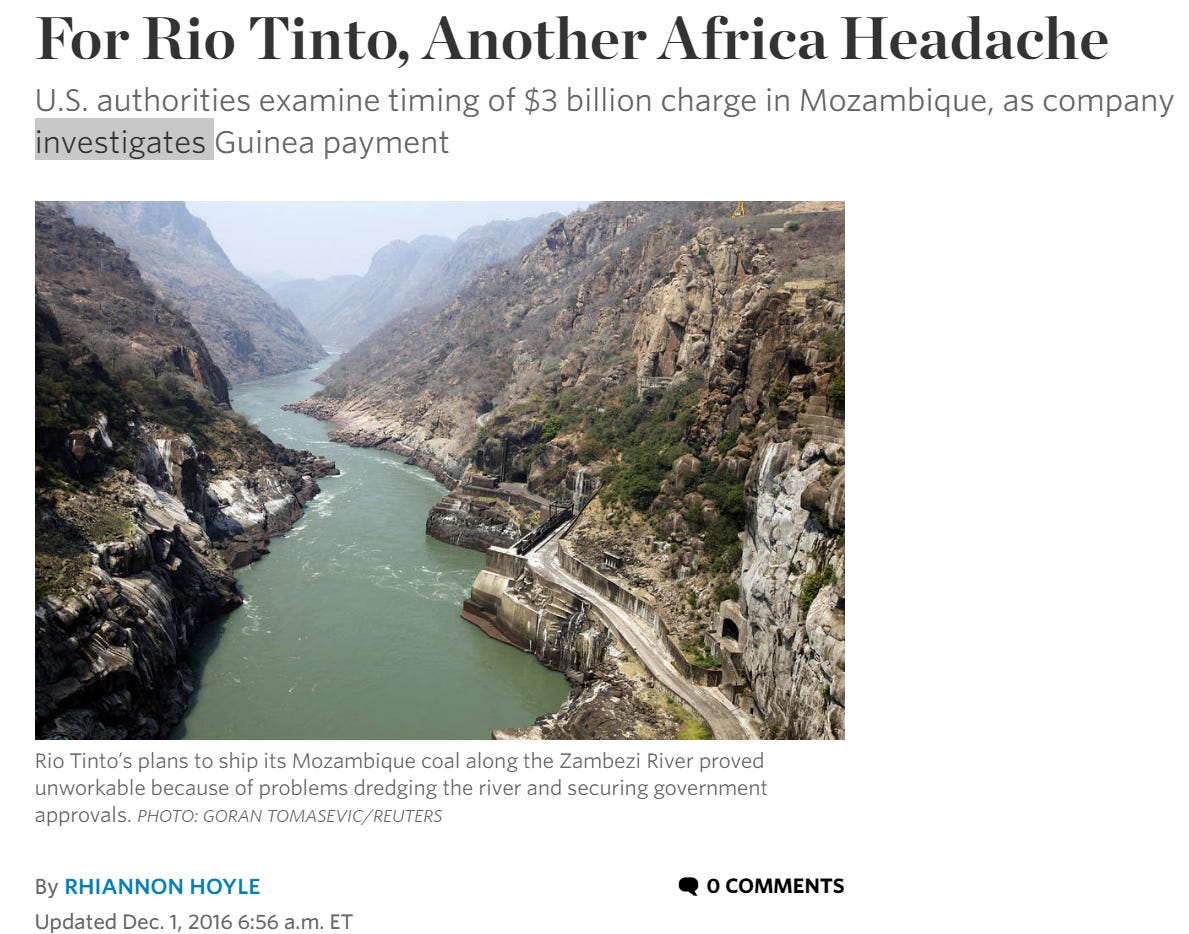 But not so fast. Indians bought the Benga mine in 2014 for $50 million from Rio Tinto, which had bought the mine three years earlier for $3.9 billion. Think that went over well with Rio’s stockholders? Heads rolled.
