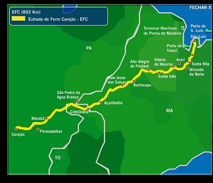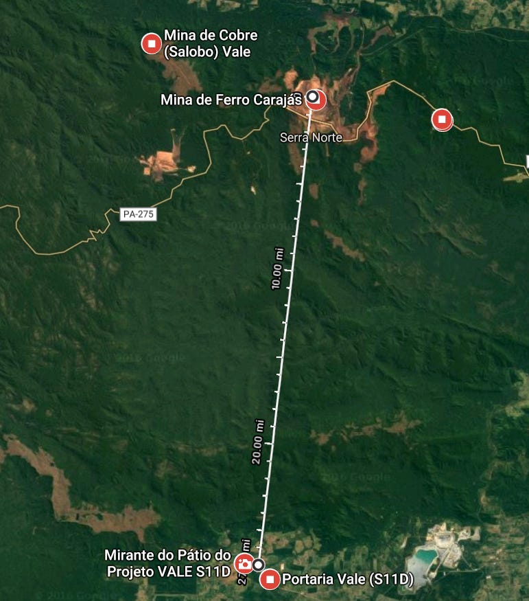 The ore is shipped by the EFC (Estrada de Ferro Carajás) railroad to the coastal town of São Luis. Before S11D opened, trains were already carrying about a million tons of ore daily. The EFC also carries about 1,300 passengers daily.
