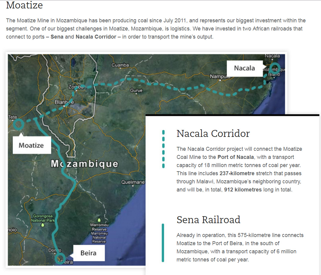 Answer: presumably the same way Vale is doing it at their own mine, namely by rail. But the existing rail line to Beira can’t carry nearly the output of these mines. Solution: t he Nacala Logistics Corridor, a new railroad to the deep-water port at Nacala.