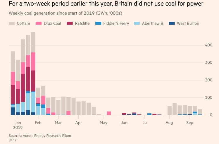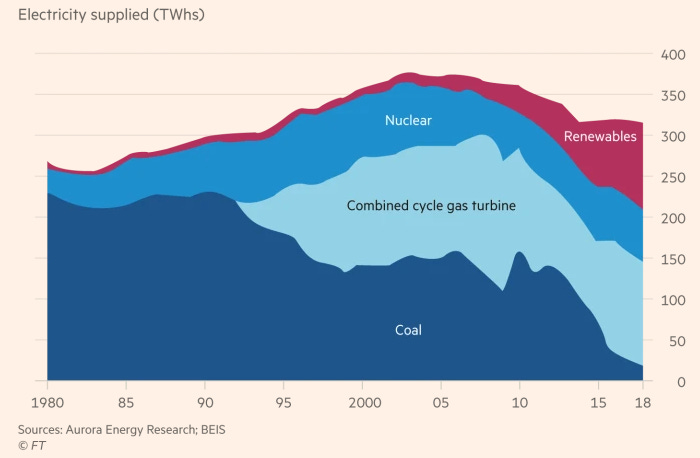 For a period in the summer of 2019, all UK electricity came from gas, nuclear, or renewables. It was the first time since 1882 that no electricity was generated in the UK with coal.