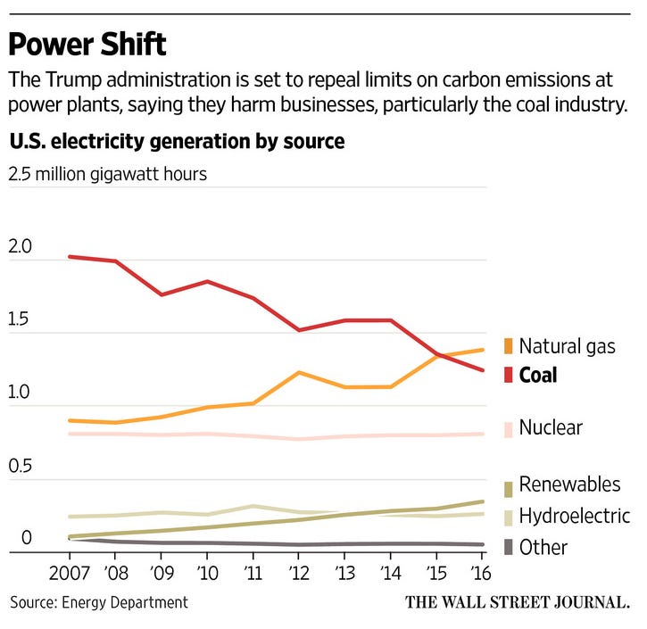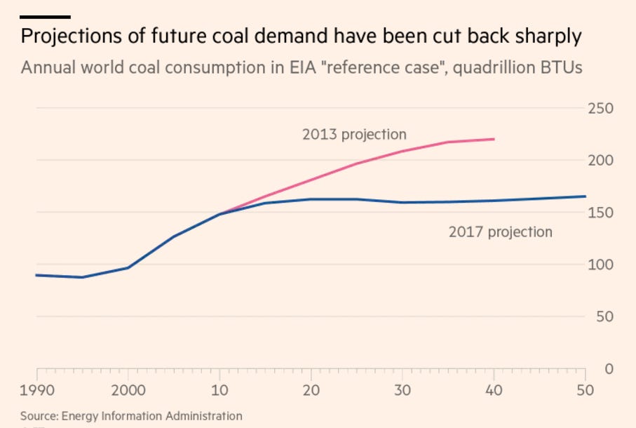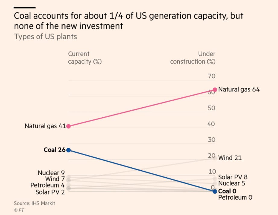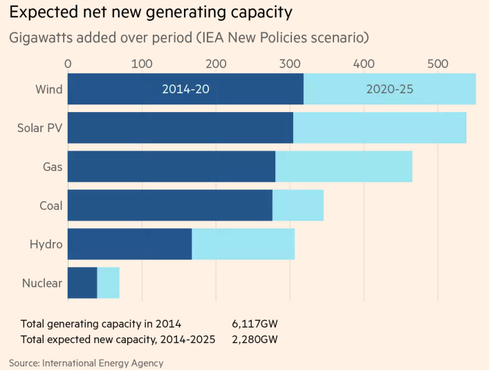 Look at the power coming online around the world during the period 2014-2025. There’s a lot more generated from wind than from coal, and a lot more solar power, too.