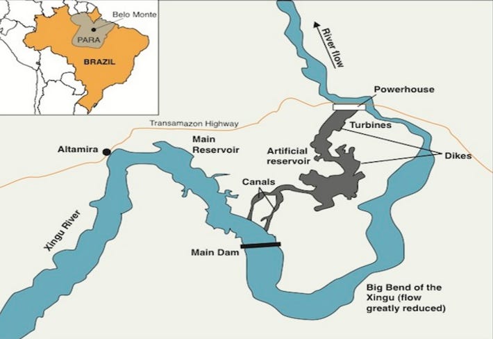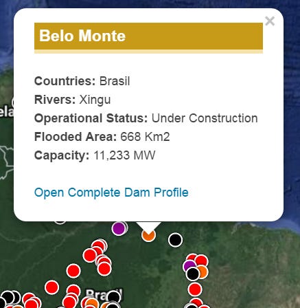 Here’s the biggest of them; Belo Monte, on the Xingu. At 11,000 megawatts, it’s number two in the world and has already begun power generation, though not at capacity.