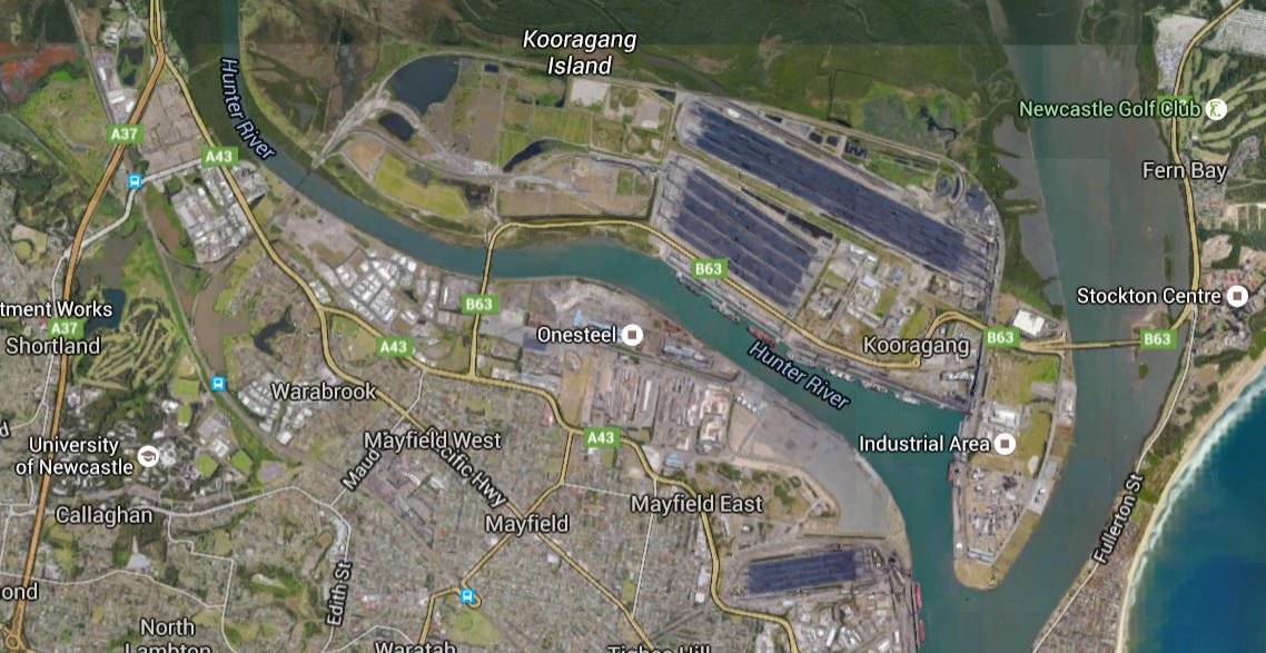 So here are some coal-export terminals at Newcastle, about 100 miles north of Sydney.