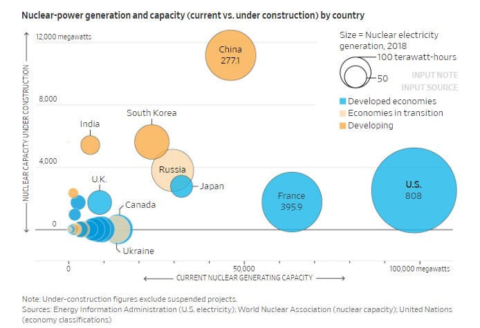 The Chinese are investing in all these things. For example, they’re building more nuclear plants than anyone else. Shall we applaud this or deplore it? Choose your poison.