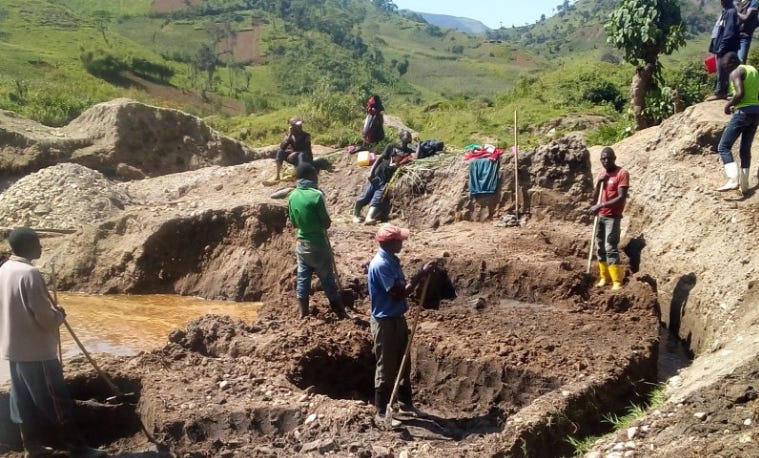 At least the miners in the previous two pictures could keep their feet more or less dry. No luck here in Luhihi, in the DRC immediately west of Lake Kivu. As the URL suggests, the people making the most money here are the service providers, not the miners. Same as in the California gold rush of 1849.