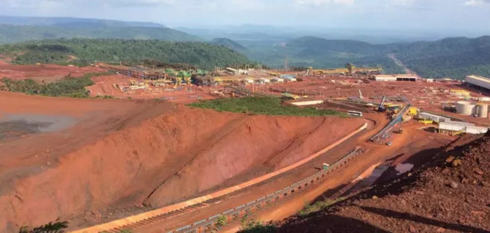 What does a modern iron-ore mine look like? Head west from Parauapebas, in the Brazilian state of Pará. Continue past the airport and Vale’s tightly organized company town of Carajás. Here’s the mine, about five miles across. The loop at the center-top is where ore is loaded onto railroad cars.