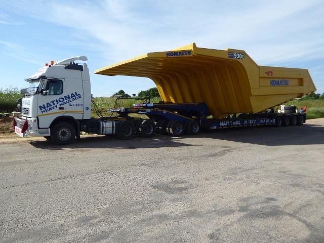Moving these things can be a challenge. Here’s a flatbed truck carrying a tray from South Africa north to the coal mines of Mozambique (I think!).
