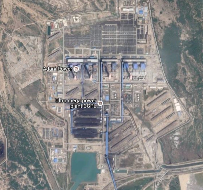 One of them, very controversial, is the Carmichael mine, intended to produce 60 million tons of coal annually for 60 years. The market: India. The developer: the Adani group, which is already importing coal from Indonesia to Mundra, in Gujarat. Bear in mind that India has lots of its own coal, but sometimes it’s easier for a power generator to buy coal in the world market. The lower image shows the coal pile at Mundra.