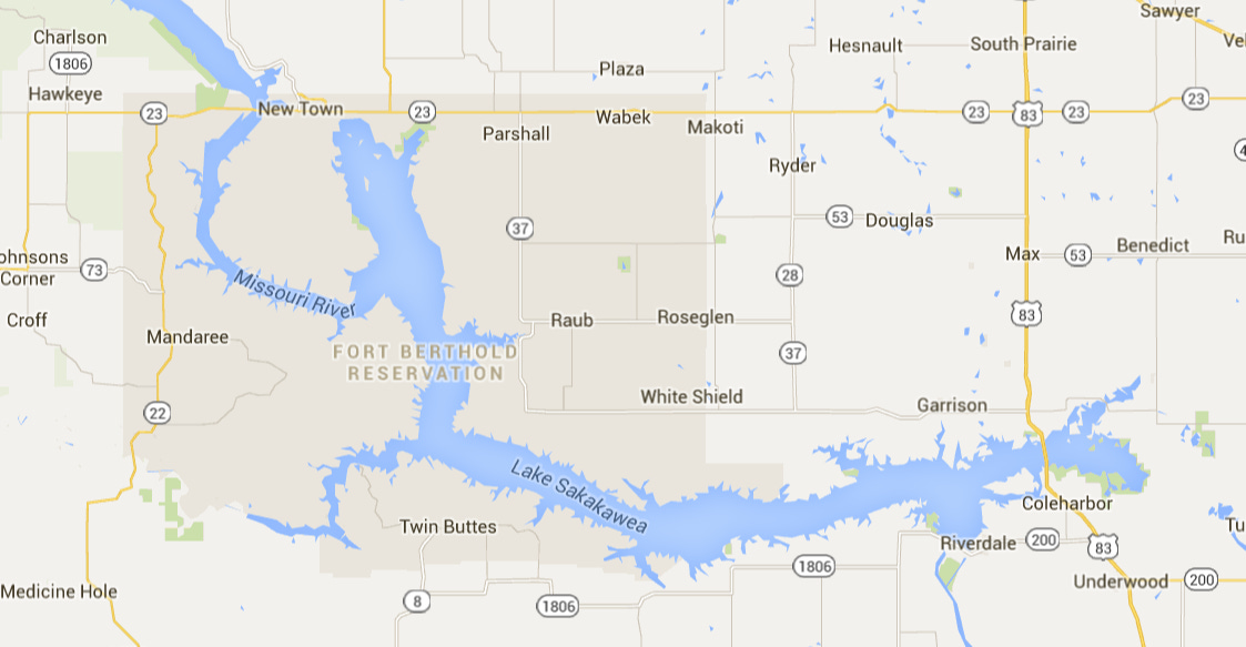 As you can see, the reservoir cuts the Fort Berthold Reservation in half.