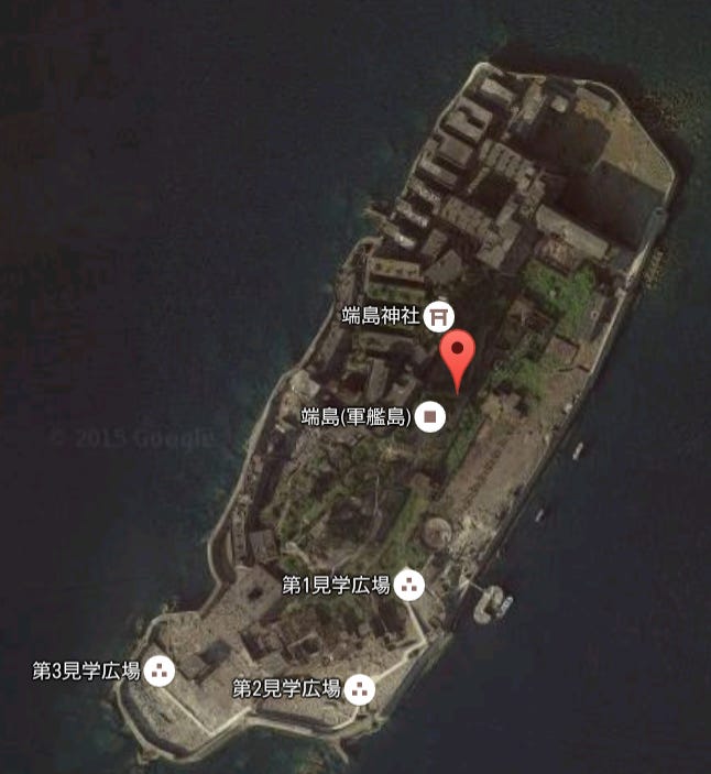 The death of the coal industry in these places has left behind a constellation of dead or dying towns. The most spectacular may be Hashima Island, now abandoned but where between 1890 and 1974 Mitsubishi mined coal from under the sea. At its peak, in 1959, over 5,000 people lived here; earlier, during WW II, Chinese and Korean forced-labor worked the mine.