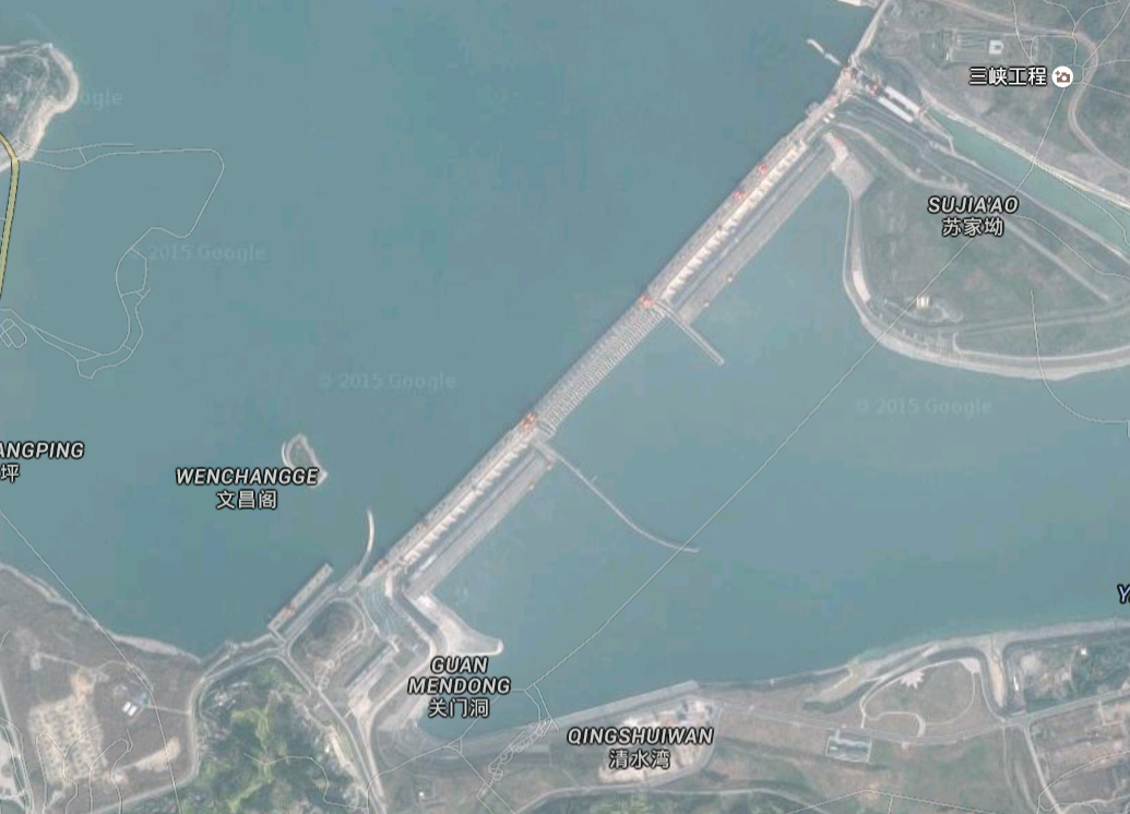 I’ve marked out the course of the reservoir which stretches about 300 miles upstream to Chongqing, which is just beyond the left margin.