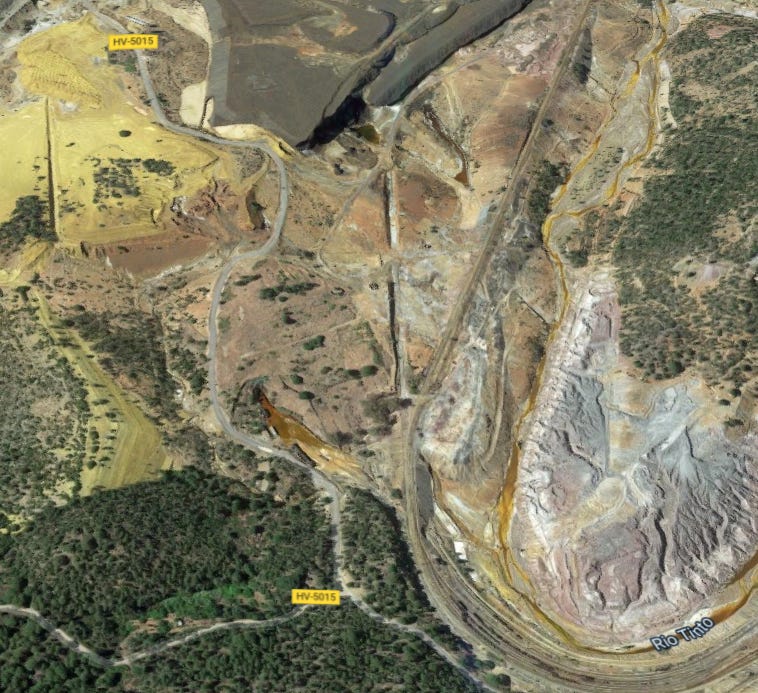 If you go looking downstream, you'll see a real mess of waste rock choking a river.