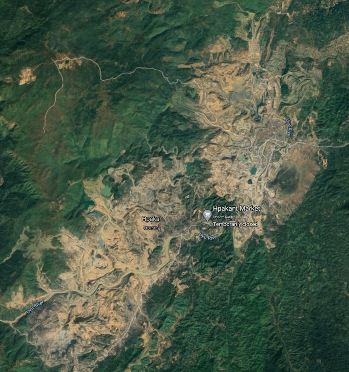 A close-up. These mines are controlled by either the military or by the Kachin Independent Army, and they employ about 100,000 people despite grave danger from landslides and floods.