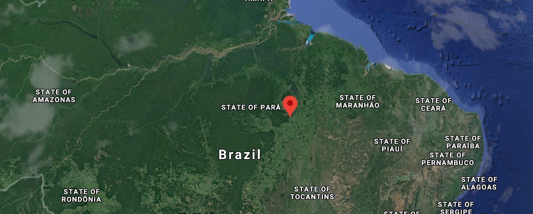 The Kayapo reserve is one of Brazil’s largest, covering over 12,000 square miles (Massachusetts is less than 8,000) divided between Pará (PA) and Mato Grosso (MT) states.