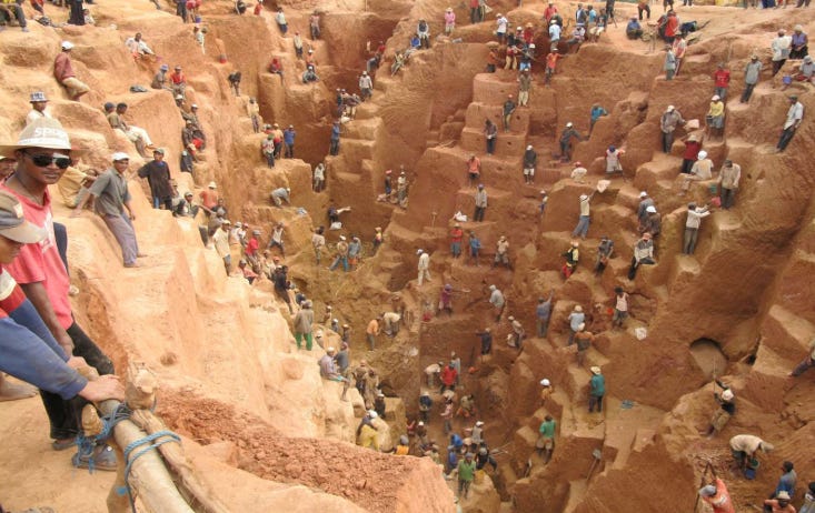Such “artisanal miners,” as they are politely termed, operate in many parts of the world. That’s the way the old gold rushes of California and Canada’s Yukon operated, of course. Today, solo prospectors still scramble not only in Brazil but also in Africa. You don’t have to look far to find dramatic images of this stuff. Here are three from Africa.